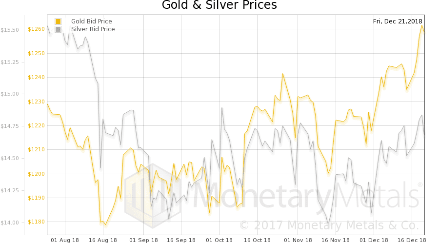 And unlike in gold, the Monetary Metals Silver Fundamental Price fell 8 cents, to $15.11.