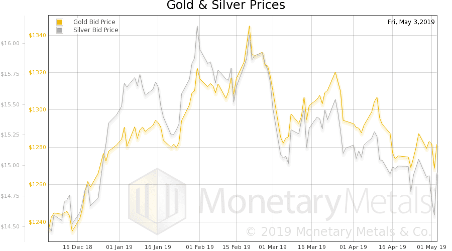 The Monetary Metals Silver Fundamental Price was up 20 cents to $15.85, right back where it was two weeks ago.