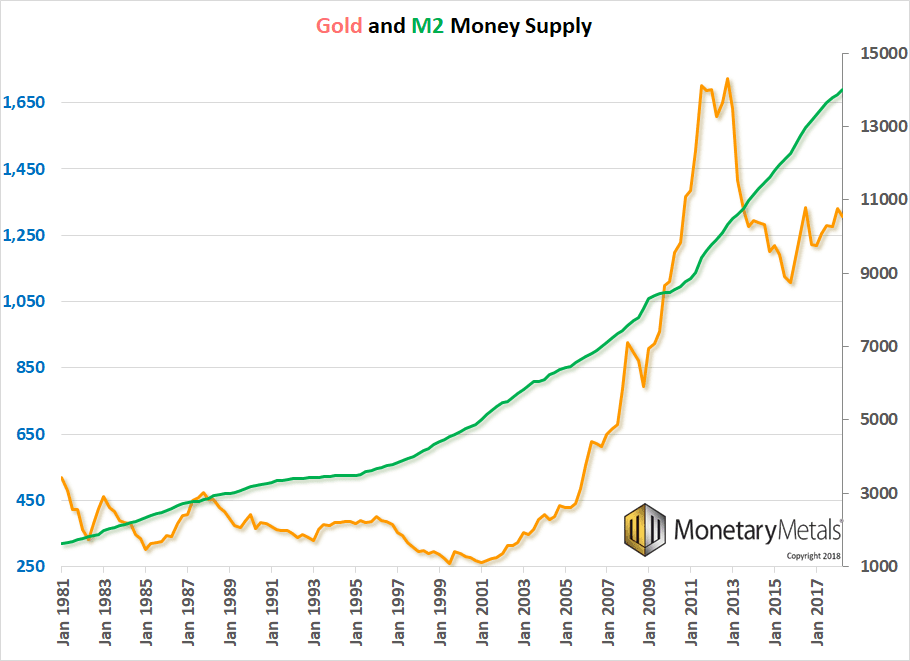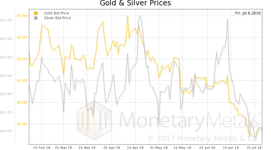 The Monetary Metals Gold Fundamental Price went up $2 this week to $1,300.