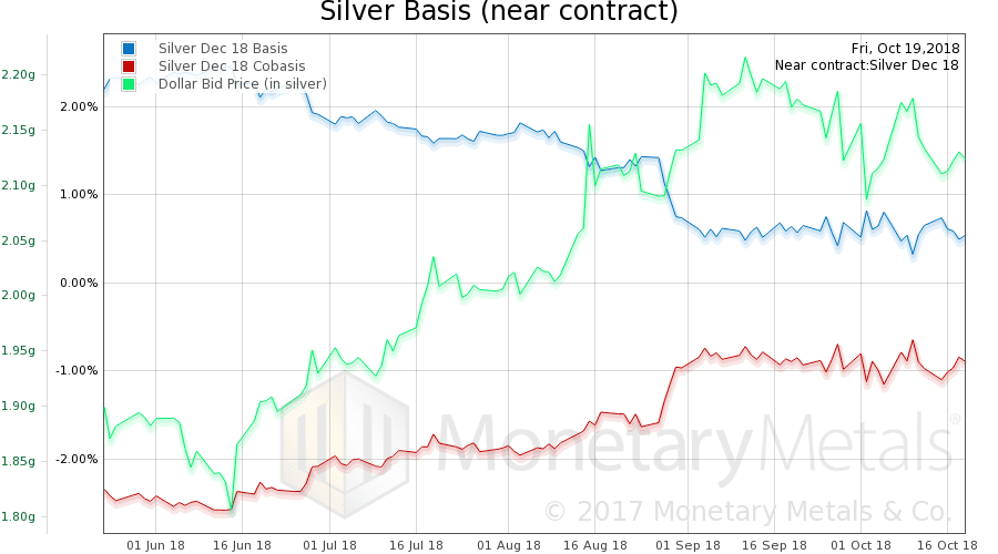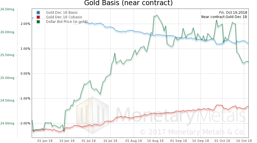 Here is the gold graph showing gold basis, cobasis and the price of the dollar in terms of gold price.