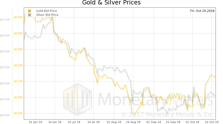 The Monetary Metals Gold Fundamental Price rose further, from $1,299 to $1,306.